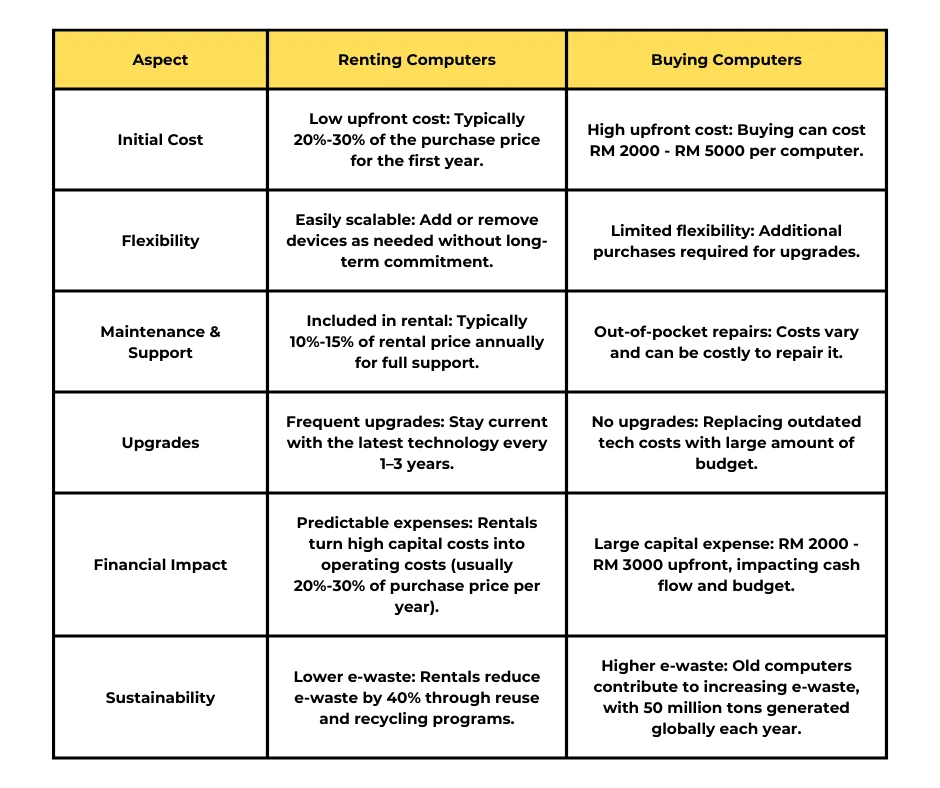 Our goal is to help you manage your computer equipment efficiently and cost-effectively without disrupting normal business operations. Discover how Smart Rental’s leasing services can provide your business with a stable and reliable one-stop IT equipment solution.